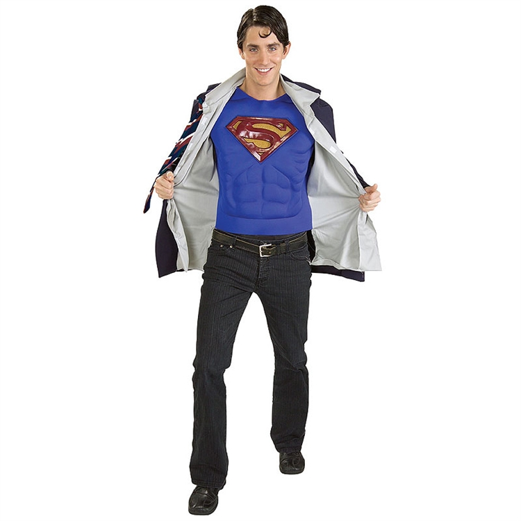 Make a smooth change from Clark Kent to Superman with this costume. The man of steel always lies just beneath the surface to help fight the good fight. This Clark Kent Superman Adult Costume includes a jacket with attached shirt front with tie and muscle chest and glasses.