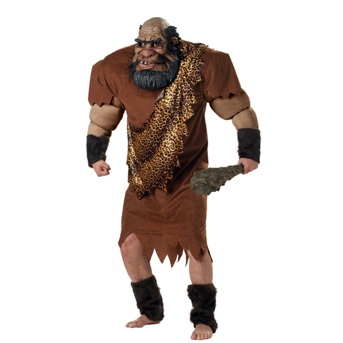 This Cro-Magnon Caveman Adult Costume is sure to get super sized laughs and turn a lot of heads at any Halloween costume party or parade. This funny adult caveman costume includes a tunic with leopard-print drape and muscle arms, brown fur cuffs, an oversized face mask, a plastic inflatable shoulder accessory that can be worn under the tunic to beef-up your chest and shoulders for an ultra-muscular appearance, and fur shin covers. The vinyl character mask features great texture and wrinkle detailing. The large nostril opening provide easy breathing and has large eye holes to provide an unobstructed view. The furry eyebrows, realistic looking beard, and bald head add perfect caveman character to this funny Cro-Magnon costume. Have your lady dress up in a sexy cave woman costume (sold separately) for a great prehistoric couples costume. You may already think that your guy acts like an early modern human, but now they can look the part dressed in this Cro-Magnon adult cave man costume. Made of 100% Polyester. Care Instructions: Hand wash in cold water. Line Dry. Do not tumble dry. Do not bleach.