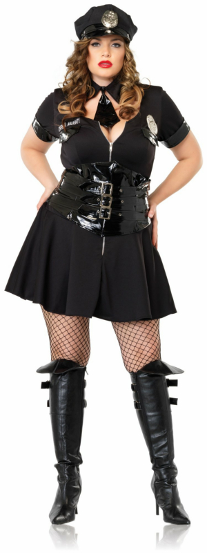 This lustful lawmaker isn’t afraid to get a little frisky. The Officer Naughty ensemble includes a front zip dress that features breast pockets, a badge, and a short flared skirt. A necktie with collar, police hat, and a shiny pleather waist cincher with three buckles are also included to help you embody the essence of badness. Felony’s will be non-stop once people get a look at this naughty cop.