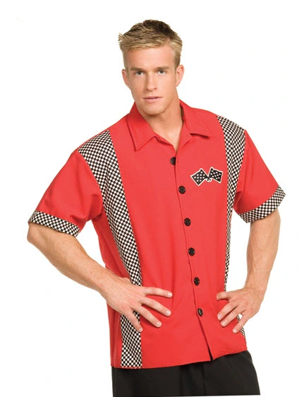 Costume includes:Red collared shirt with checkered board design and embroidered patch.